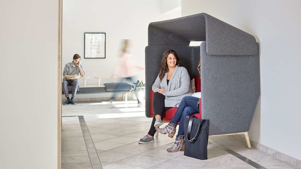 Each detail of the design works together to create a pocket of people to gather or spend time alone, from its rounded corners to the precise thickness of the sound-dampening felt.