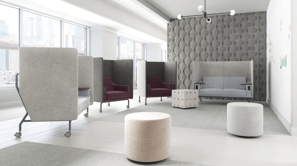 For individuals, this acoustic seating design creates a place for people to escape, think, and breathe. For groups, it creates a place for people to closely collaborate and connect. We even took it to a more portable level with the new mobile version, creating the option to adjust the space according to employee needs throughout the day. This design’s comfort and visual softness allow these small rooms to blend seamlessly into the office, while still providing the closeness and privacy people need to really focus.