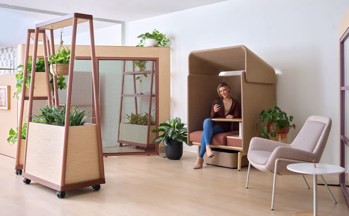 Soft Architecture frees us from being locked into permanent situations and fosters our ability to adapt to whatever lies around the corner. Creating anchor products that serve as both architectural elements that can be changed as needs shift, as well as activating the spaces within that framework, will give power and flexibility to both employees and their teams. All the furniture in this scene is available for purchase, even if you don’t wish to purchase the wood frame structures. Click on the “Details” tab for some thought starters.