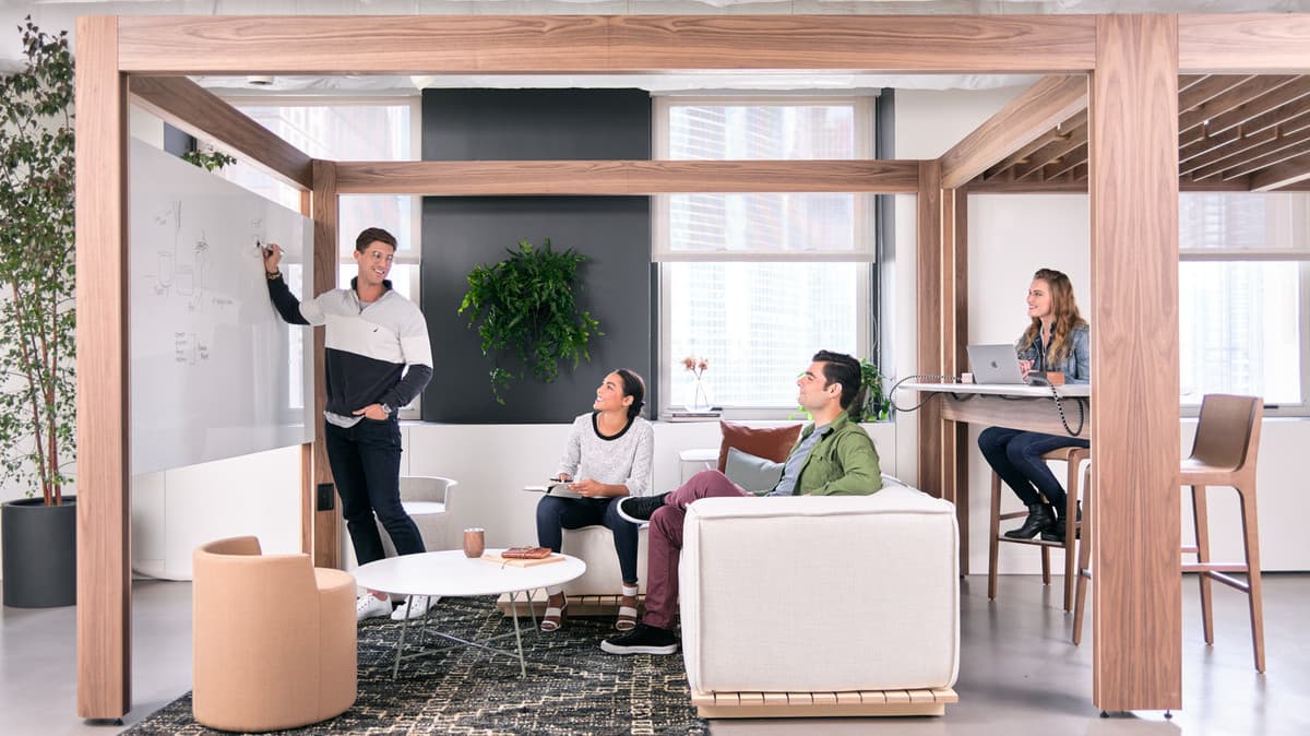 Soft Architecture frees us from being locked into permanent situations and fosters our ability to adapt to whatever lies around the corner. Creating anchor products that serve as both architectural elements that can be changed as needs shift, as well as activating the spaces within that framework, will give power and flexibility to both employees and their teams. All the furniture in this scene is available for purchase, even if you don’t wish to purchase the wood frame structures. Click on the “Details” tab for some thought starters.