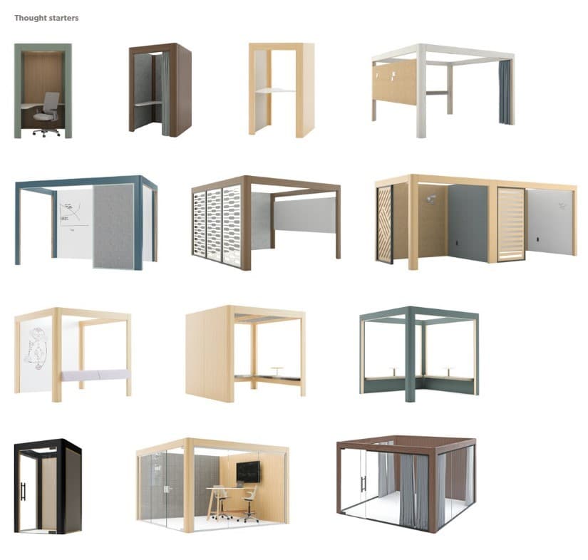 Soft Architecture frees us from being locked into permanent situations and fosters our ability to adapt to whatever lies around the corner. Creating anchor products that serve as both architectural elements that can be changed as needs shift, as well as activating the spaces within that framework, will give power and flexibility to both employees and their teams. All the furniture in this scene is available for purchase, even if you don’t wish to purchase the wood frame structures. Click on the “Details” tab for some thought starters.