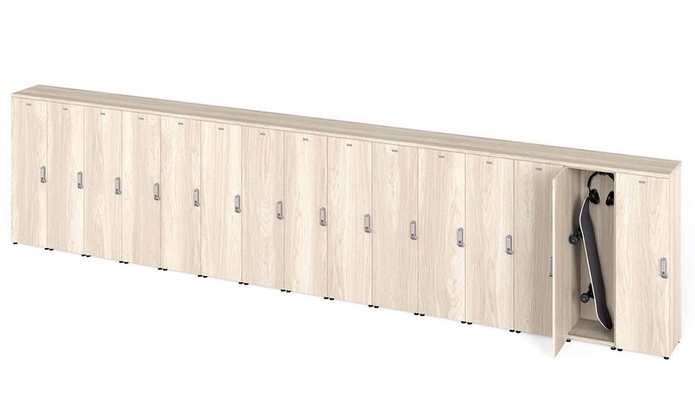 StrongProject offers an extensive range of Locker Storage sizes to accommodate the needs of any hybrid workspace. Featuring optional high-gloss acrylic door fronts in addition to electronic locks, number plates, coat hangers, shelves and hooks. Whether they are used in a group, as a room divider, as a collaboration island with a common top or stand-alone configuration, our made-to-order design philosophy and production process means we can create your ideal furniture solution in the exact size of your choice.