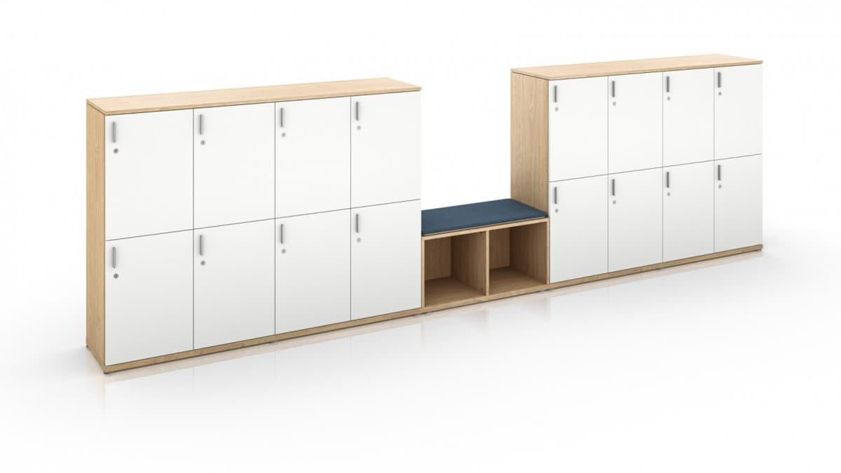 StrongProject offers an extensive range of Locker Storage sizes to accommodate the needs of any hybrid workspace. Featuring optional high-gloss acrylic door fronts in addition to electronic locks, number plates, coat hangers, shelves and hooks. Whether they are used in a group, as a room divider, as a collaboration island with a common top or stand-alone configuration, our made-to-order design philosophy and production process means we can create your ideal furniture solution in the exact size of your choice.