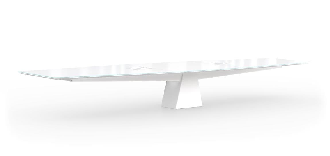 This Ultra Modern Conference Table design provides the perfect balance of form and function to turn any conference environment into an impressive design statement. Its patent-pending, revolutionary design leverages a single base to create the illusion of a floating surface up to 20 feet.