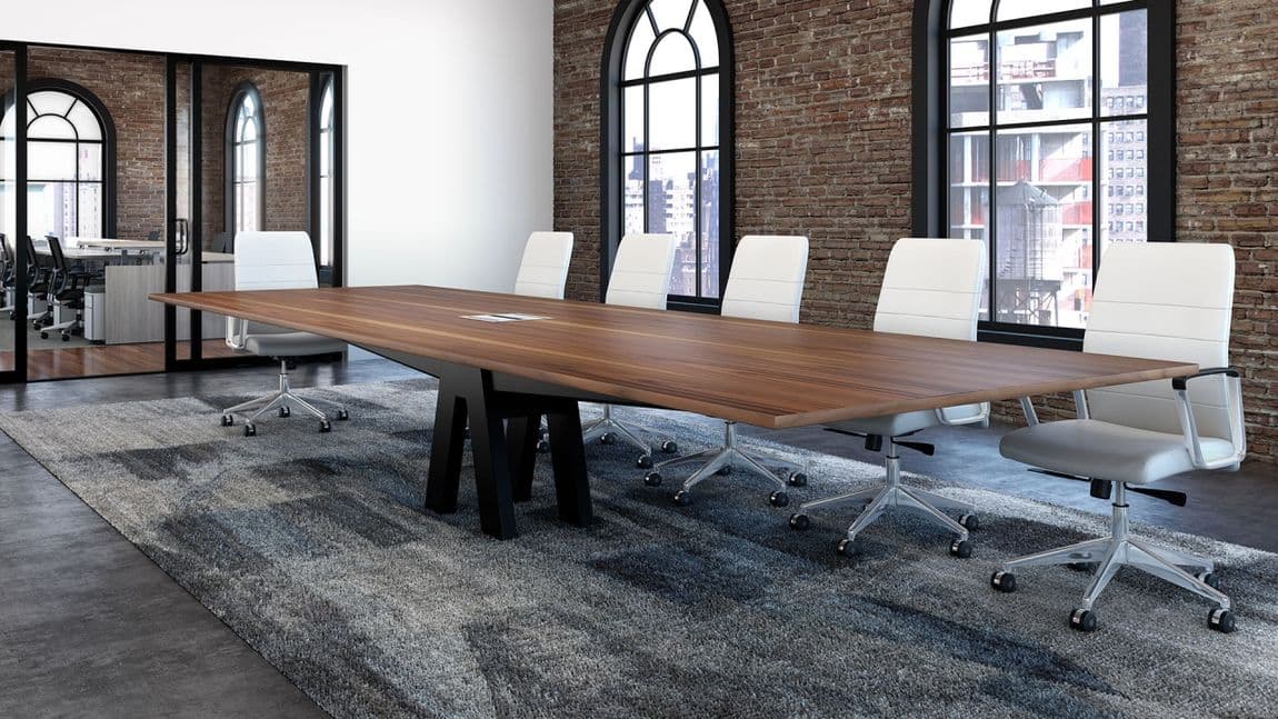 Additionally, the optional exposed truss aesthetic creates a structural statement, complementing current architectural forms. Unimpeded knee space is enjoyed at every position around the table. Designed for technology integration, it includes base and trough covers to conceal power and cabling without compromise.