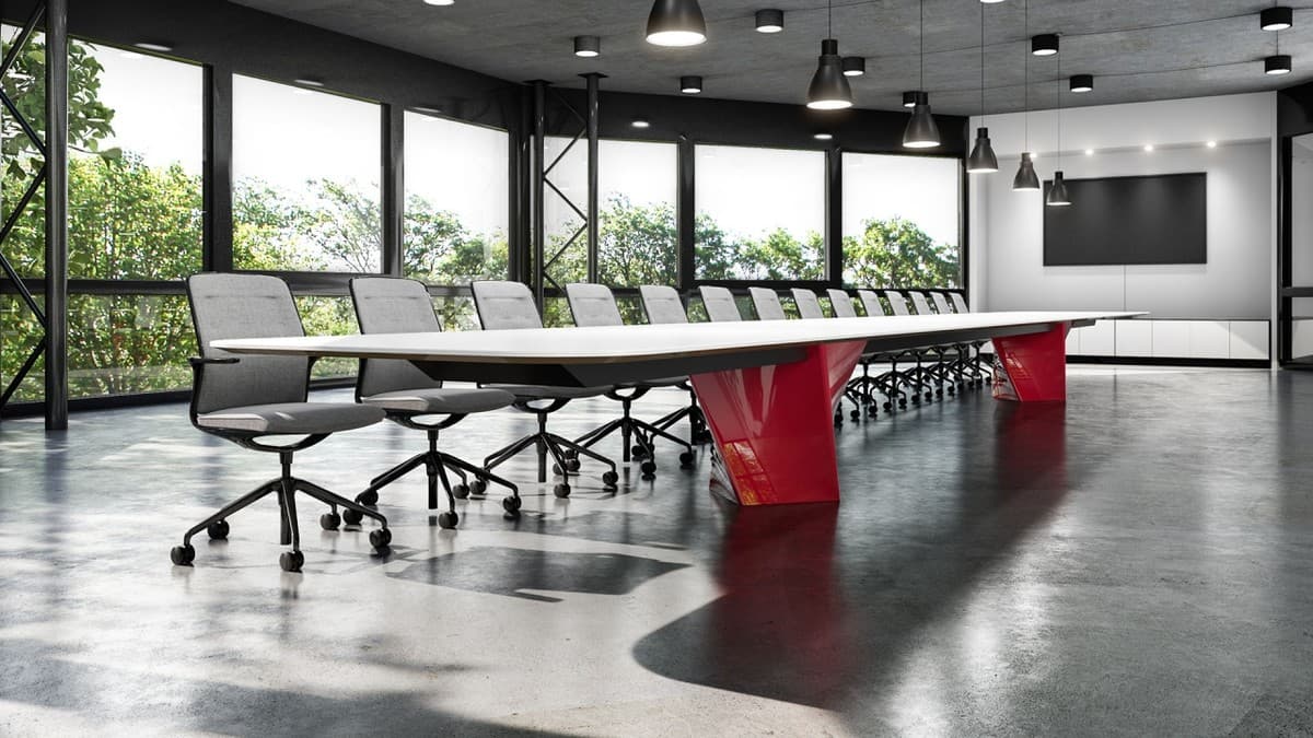 Inspired by ancient architecture, this boardroom table tells a story of design built to last. Constructed of fiberglass and reinforced steel, this ultra-modern boardroom table design supports spans up to 36 feet with two bases. Available in a variety of high-gloss and matte paint finishes, this conference table is designed to make a statement in the spaces that matter most.