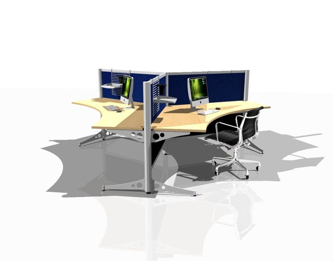 The efficient angles of this open, collaborative cubicle design allows businesses to optimize on their available square footage by allowing for a higher number of seats than most linear designs while still providing a sense of openness. When placed in an open plan, the geometry of the pods provides a more organic flow than rows and rows of liner cubicles. Available with or without rounded collaboration ends.