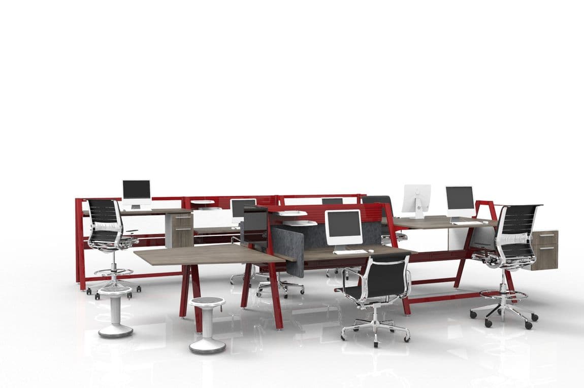 Worksurfaces can be set at seated or standing height – or anywhere in between – 24”H – 49”H
