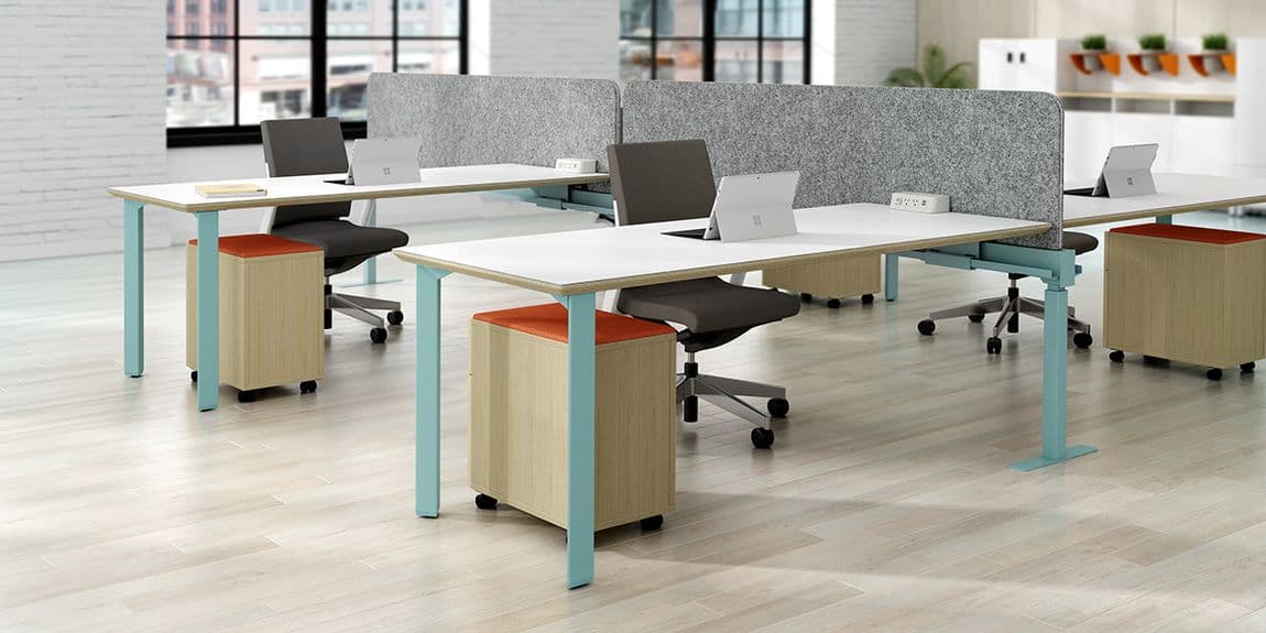 Our Technology Rail System provides choice and flexibility like no other. The freestanding rail provides voice, power and data with limitless configurability, to meet the demands of any floorplan. Pair it with nearly any worksurface or storage component.