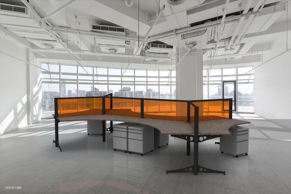 The efficient angles of this open, collaborative cubicle design allows businesses to optimize on their available square footage by allowing for a higher number of seats than most linear designs while still providing a sense of openness. When placed in an open plan, the geometry of the pods provides a more organic flow than rows and rows of liner cubicles. Available with or without rounded collaboration ends.