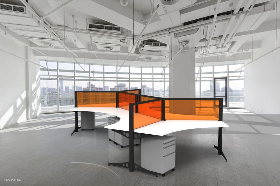 The efficient angles of this open, collaborative cubicle design allows businesses to optimize on their available square footage by allowing for a higher number of seats than most linear designs while still providing a sense of openness. When placed in an open plan, the geometry of the pods provides a more organic flow than rows and rows of liner cubicles. Available with or without rounded collaboration ends.