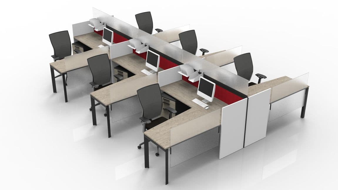 These sleek and stylish modern workstations feature rustic woodgrain panels and worksurfaces combined with architectural metal legs along with acoustic felt dividers to blend form and function for today’s modern workspaces. Also featured are our unique flared worksurfaces that provide more usable desktop space in a compact workstation footprint.