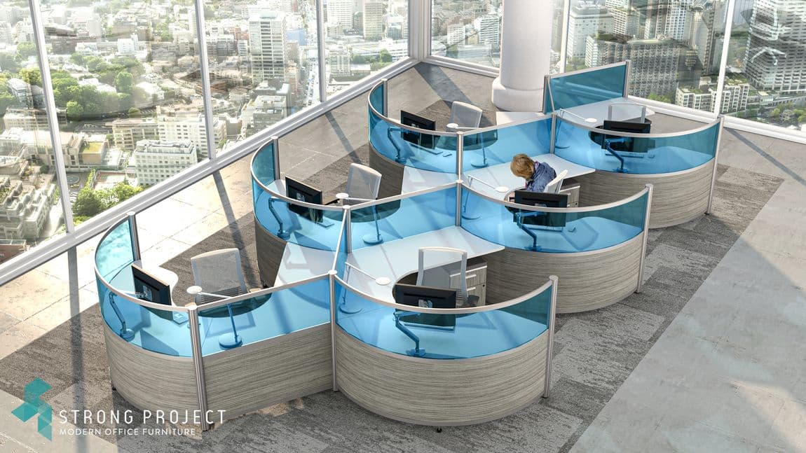 For a truly unique, futuristic looking office space, explore our modern Curved Workstations. Incorporating this cool modern office furniture design to your open office areas will transform your workplace from standard to ultra modern and will impart the image of a forward thinking, innovative brand. As an additional ergonomic option, height adjustable worksurfaces are also available!