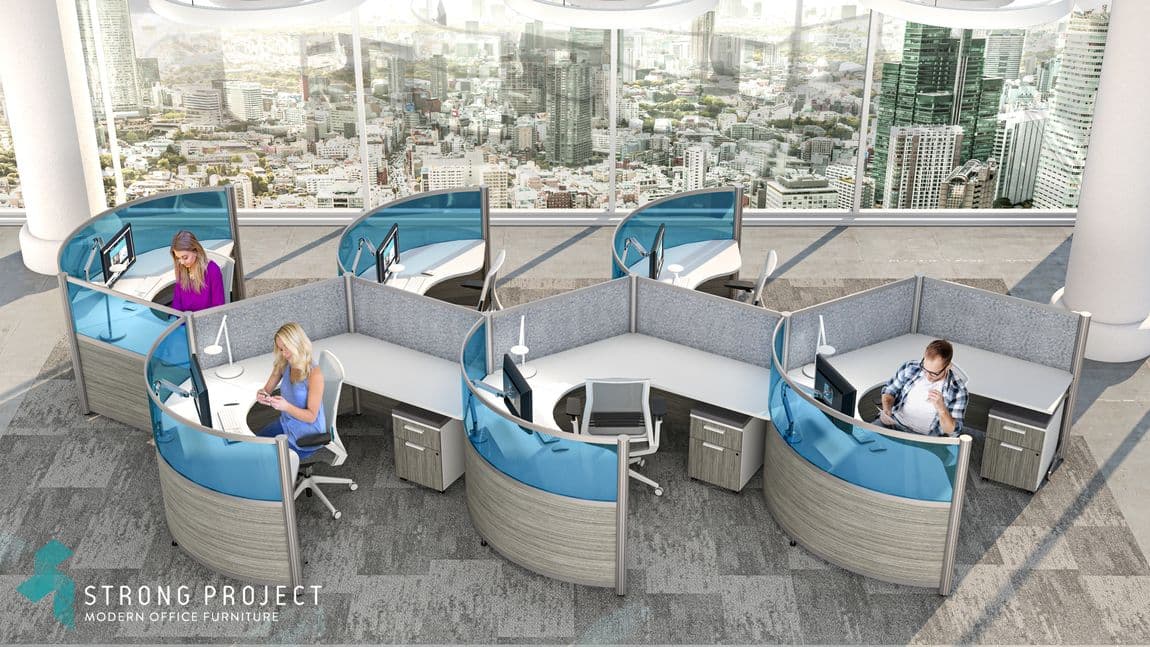 For a truly unique, futuristic looking office space, explore our modern Curved Workstations. Incorporating this cool modern office furniture design to your open office areas will transform your workplace from standard to ultra modern and will impart the image of a forward thinking, innovative brand. As an additional ergonomic option, height adjustable worksurfaces are also available!