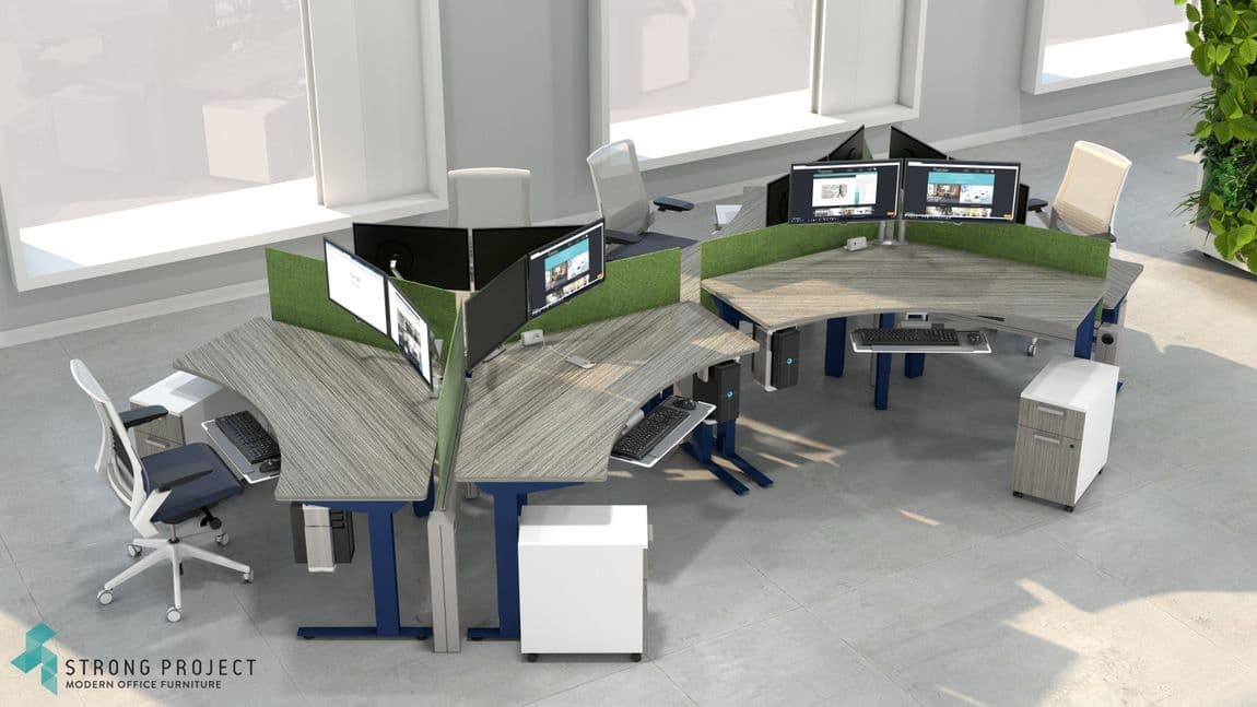 As a higher-design alternative to the boring sit-stand imported desks that have flooded the marketplace, we offer custom color applications to our Made In The USA height-adjustable desk legs and power beams which will allow you to create sit-stand open office workstation designs that are in line with your branding colors, corporate culture and the design vibe that you want for your business. In addition to numerous color options, our sit-stand workstations can be fully loaded with cutting edge ergonomic accessories such as Single or Dual Monitor Arms, Adjustable Keyboard Trays, Desk-Mounted CPU Holders and Desktop Power/USB Chargers.