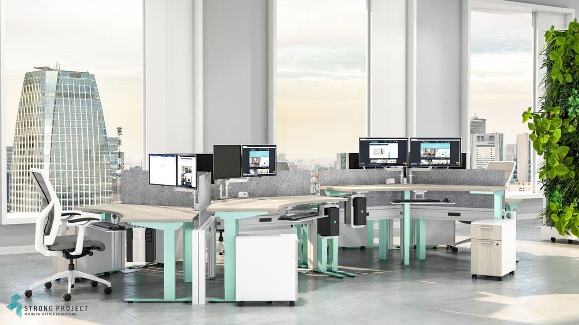 As a higher-design alternative to the boring sit-stand imported desks that have flooded the marketplace, we offer custom color applications to our Made In The USA height-adjustable desk legs and power beams which will allow you to create sit-stand open office workstation designs that are in line with your branding colors, corporate culture and the design vibe that you want for your business. In addition to numerous color options, our sit-stand workstations can be fully loaded with cutting edge ergonomic accessories such as Single or Dual Monitor Arms, Adjustable Keyboard Trays, Desk-Mounted CPU Holders and Desktop Power/USB Chargers.