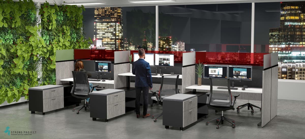 This Post-COVID open office workstation design will allow employers to create a workplace design that will support health and promote productivity as well as offering a nice blend of personal privacy & shielding while still providing an open feel letting natural light in. This stylish modular office furniture system will give you the flexibility to create a work environment that provides users with their own sense of space, fosters creativity and well-being and can be customized from a design perspective to meld with your building interior and brand.