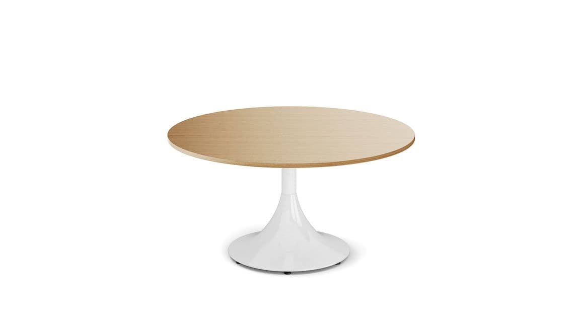 These Contemporary Occasional Tables introduce a simple and classic design to our collection. Bases are available in stainless steel or white powder coat and tops are available in Wood veneer, Laminate or solid surface.