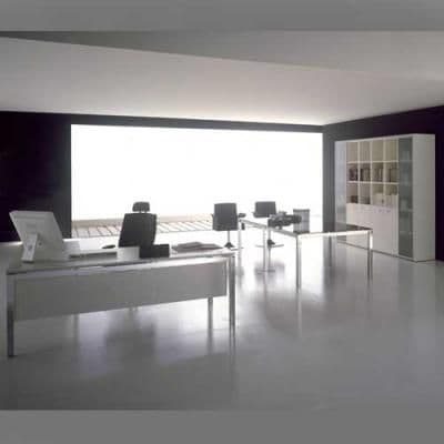 This modern glass desk design with a metal frame and legs is available in a number of sizes to fit any executive or shared office. It can be configured as a rectangular Table Desk, an L-Shape Desk or an integrated Shared Desk composition with a privacy screen. Numerous coordinating storage options are available in various sizes and finishes to fit any office space and satisfy any filing or general storage requirement.