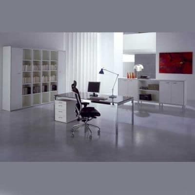 This modern glass desk design with a metal frame and legs is available in a number of sizes to fit any executive or shared office. It can be configured as a rectangular Table Desk, an L-Shape Desk or an integrated Shared Desk composition with a privacy screen. Numerous coordinating storage options are available in various sizes and finishes to fit any office space and satisfy any filing or general storage requirement.