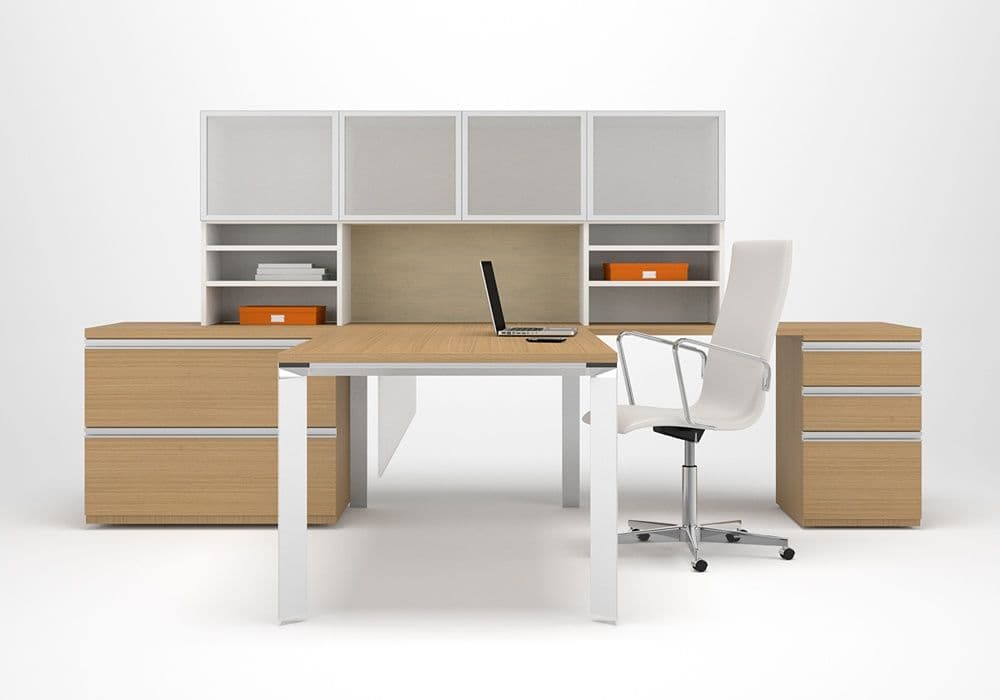 This Affordable Modern Desk design features clean lines, commercial grade quality, the latest in textured woodgrain laminates and a high level of design for the money. To compliment this sleek executive desk design is a comprehensive storage collection as well as small meeting tables and conference tables. Available in rectangular desks, L-Shape Desks and U-Shape Desks.