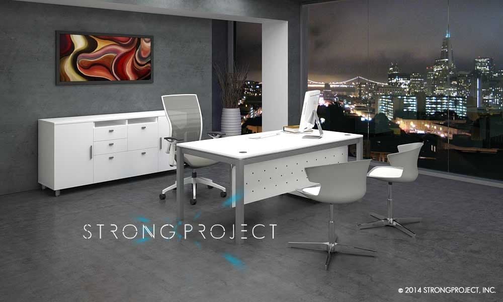 This contemporary office desk design is an ideal solution for businesses seeking a sleek, modern, tailored look and quality components at a price point geared toward staying within budget…especially on larger scale projects. This modern desk design features a durable thermofused laminate worksurface, metal frame and legs and is available in a number of sizes to fit any executive or shared office. It can be configured as a rectangular Table Desk, an L-Shape Desk or an integrated Shared Desk composition with a privacy screen.