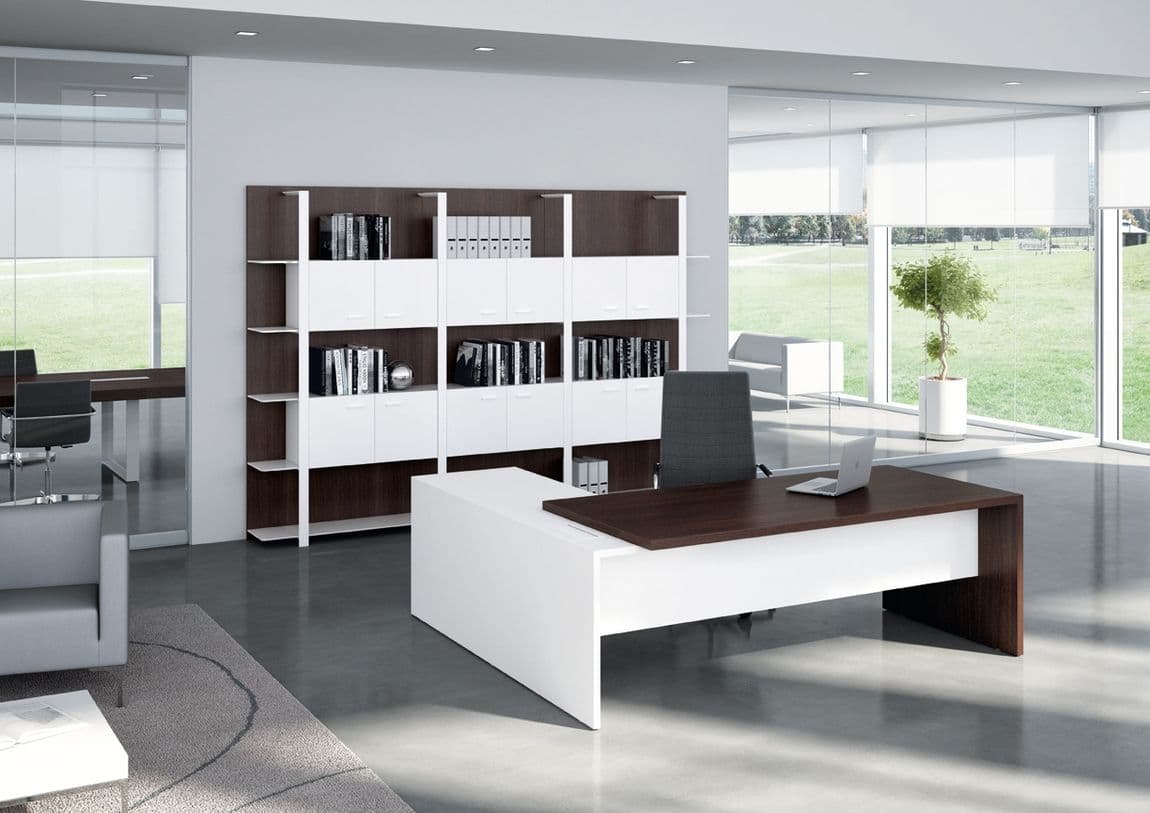 This Modern Office Desk design features clean lines, floating tops, beautiful Italian laminate finishes and a high level of design for the money. To compliment this sleek executive desk design is a comprehensive storage collection as well as small meeting tables and conference tables.