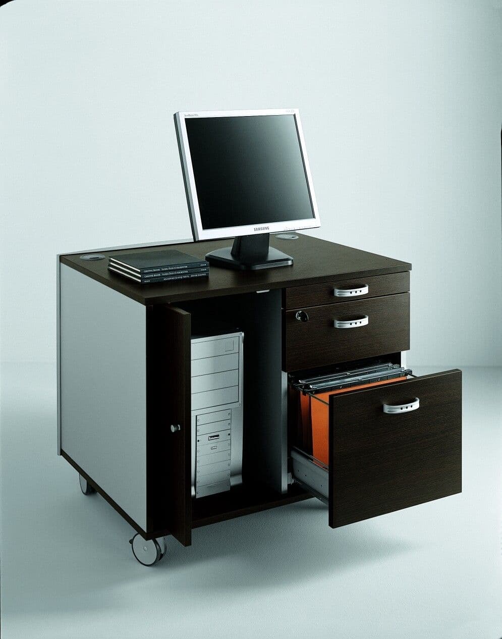 This luxury contemporary office desk series is a statement piece suited to the executive looking for clean, architectural lines and refined detailing. It can be configured as a rectangular Table Desk or an L-Shape Desk with an integrated storage compartment equipped with a flip top cable tray and 3 drawer storage pedestal. Desktops are in matte, scratch-resistant, non-reflective and washable thermofused laminate or satin, tempered, fingerprint-proof white glass. The legs are available in two versions: Open and Closed. They are made of steel with a trapezoid shape section and can be powder coated in a matte white finish or in polished chrome. Also available is a matching meeting table series as well as coordinating storage options.