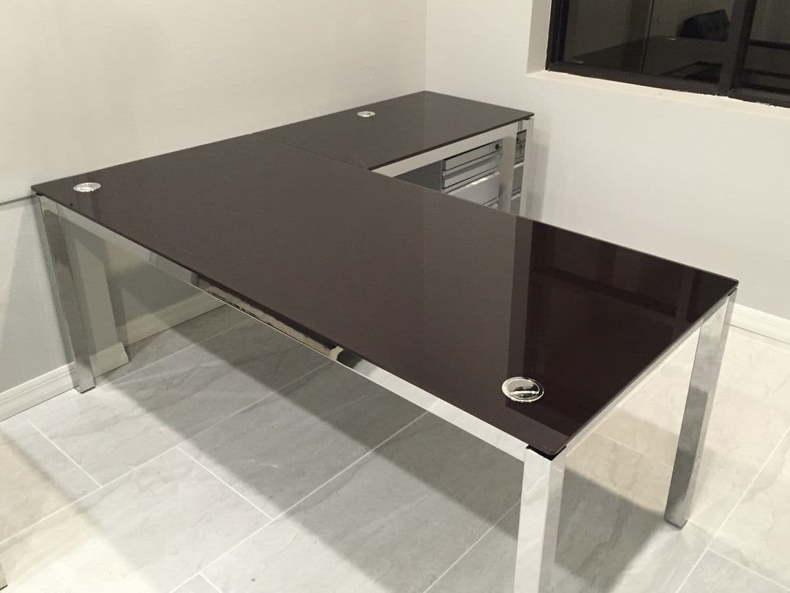 This modern glass desk design with a metal frame and legs is available in a number of sizes to fit any executive or shared office. It can be configured as a rectangular Table Desk, an L-Shape Desk or an integrated Shared Desk composition with a privacy screen. Numerous coordinating storage options are available in various sizes and finishes to fit any office space and satisfy any filing or general storage requirement.