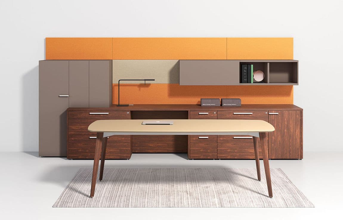 A collection of components that can be arranged to suit any scale and any type of space, be it private or open spaces. At the heart of the concept is the ability to organize the modules to your individual and personal taste. You can create a space that really represents you. The solid wood leg is built on hand crafted solid wood detailing. The angular steel support structure was styled to compliment the progressive aesthetics of the furniture. Together with the knife edge, organic shaped tops, this is a rareness in design and quality that is immediately recognizable.