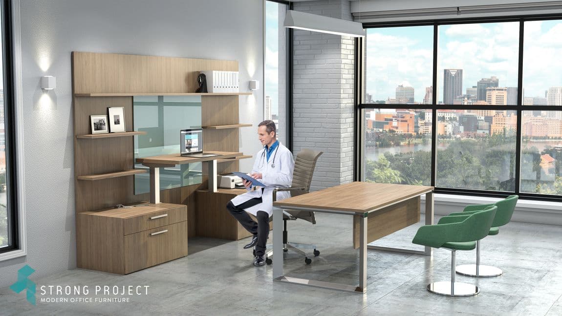 • Thoughtfully nested mechanisms for height adjustable worksurfaces ensure attractive wellness options while maintaining the main executive desk for meetings.