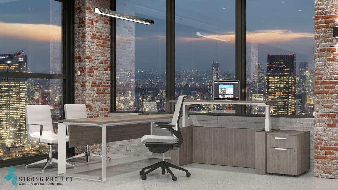 • Thoughtfully nested mechanisms for height adjustable worksurfaces ensure attractive wellness options while maintaining the main executive desk for meetings.