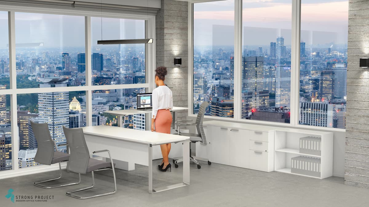 • Thoughtfully nested mechanisms for height adjustable worksurfaces ensure attractive wellness options while maintaining the main executive desk for meetings.