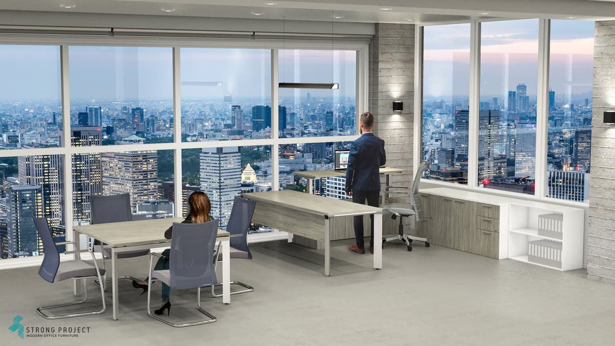 This enhanced but affordable Sit-Stand Executive U-Shape Office Desk set coupled with a matching Meeting Table creates a multifunctional, productive Private Office environment.