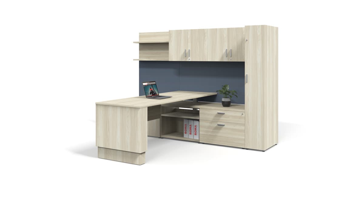 This Standing Desk and Storage series of Private Office Furniture delivers a super-smart look at an affordable price. Always conceived and created in North America, this transitional style collection includes our coveted laminate-surface collection, proprietary designs in crafted aluminum accents and unique integration of textile components.