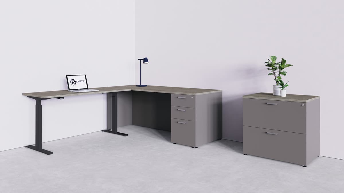 This Standing Desk and Storage series of Private Office Furniture delivers a super-smart look at an affordable price. Always conceived and created in North America, this transitional style collection includes our coveted laminate-surface collection, proprietary designs in crafted aluminum accents and unique integration of textile components.