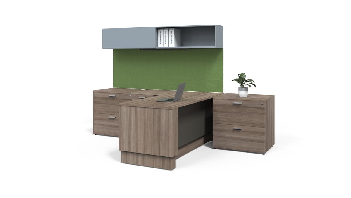 This Standing Desk and Storage series of Private Office Furniture delivers a super-smart look at an affordable price. Always conceived and created in North America, this transitional style collection includes our coveted laminate-surface collection, proprietary designs in crafted aluminum accents and unique integration of textile components.