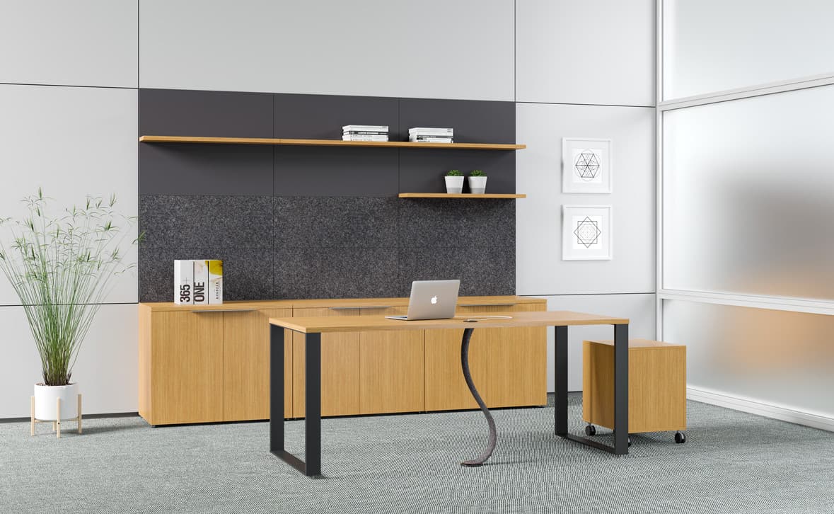 This Standing Desk and Storage series of Private Office Furniture delivers a super-smart look at an affordable price. Always conceived and created in North America, this transitional style collection includes our coveted laminate-surface collection, proprietary designs in crafted aluminum accents and unique integration of textile components.