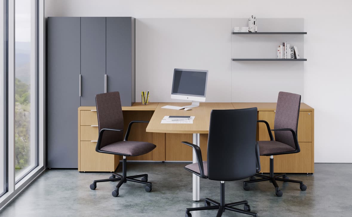 This Standing Desk and Storage series of Private Office Furniture delivers a super-smart look at an affordable price. Always conceived and created in North America, this transitional style collection includes our coveted laminate-surface collection, proprietary designs in crafted aluminum accents and unique integration of textile components.
