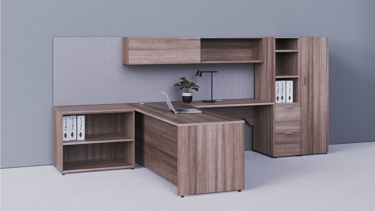 This Standing Desk and Storage series of Private Office Furniture delivers a super-smart look at an affordable price. Always conceived and created in North America, this transitional style collection includes our coveted laminate-surface collection, proprietary designs in crafted aluminum accents and unique integration of textile components.