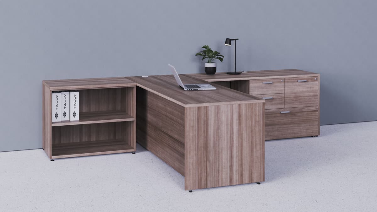 This Standing Desk and Storage series of Private Office Furniture delivers a super-smart look at an affordable price. Always conceived and created in North America, this transitional style collection includes our coveted laminate-surface collection, proprietary designs in crafted aluminum accents and unique integration of textile components.