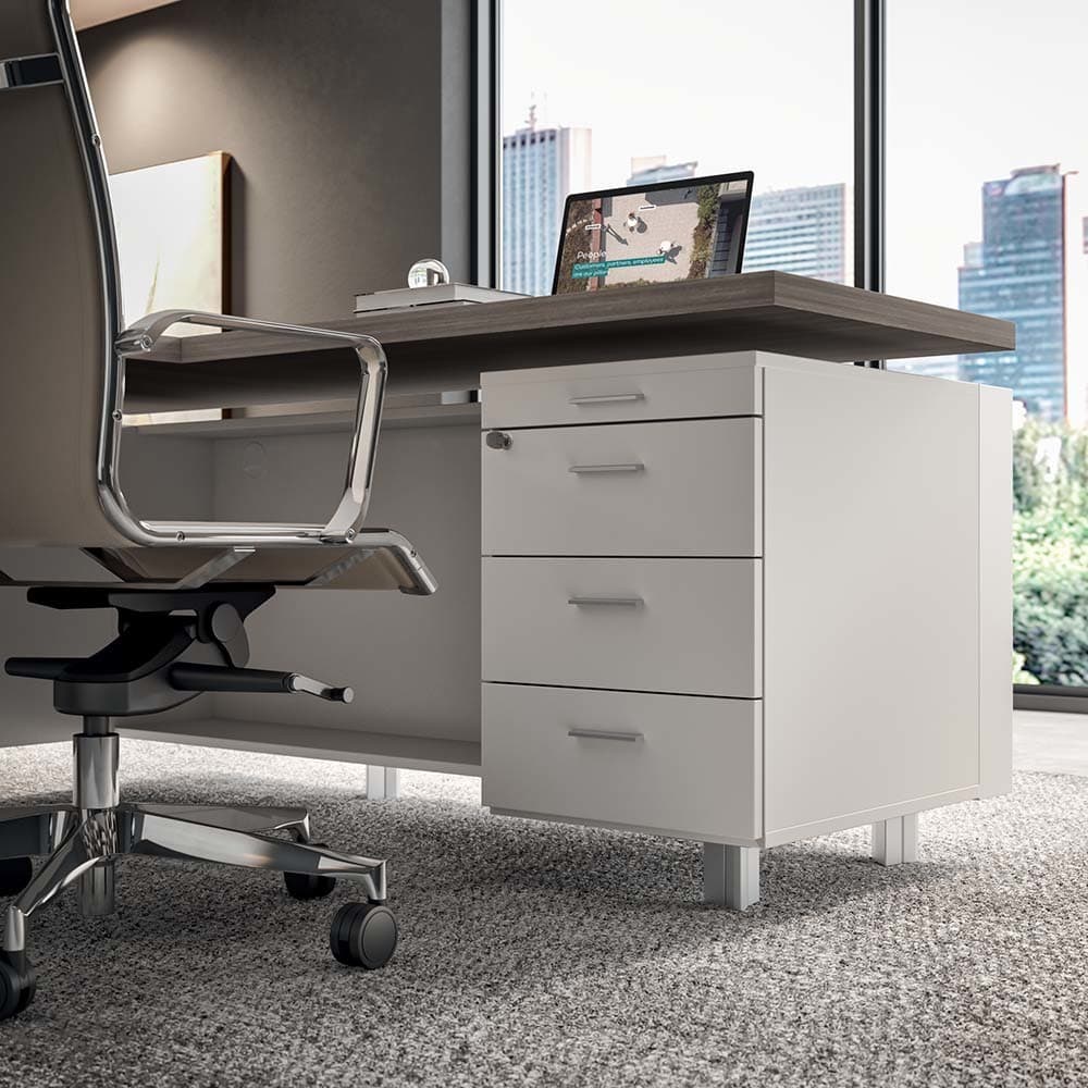 This Modern Office Desk design features clean lines, floating tops, beautiful Italian laminate finishes and a high level of design for the money. To compliment this sleek executive desk design is a comprehensive storage collection as well as small meeting tables and conference tables.