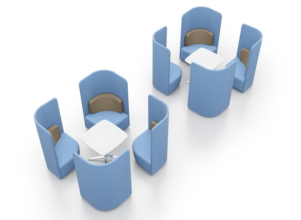 This high-back acoustic lounge seating design provides an informal meeting space with endless configuration possibilities. Available as a high-back with a low-back option, the contoured design enhances the acoustic properties and absorbs ambient background noise. Based around one simple unit, this high-back social distancing design can be used for all current office functions associated with soft upholstery such as touchdown and breakout areas, meeting spaces and partitioning. Its ease of use allows users to rearrange their office from day-to-day or even hour-to-hour depending on the task at hand.