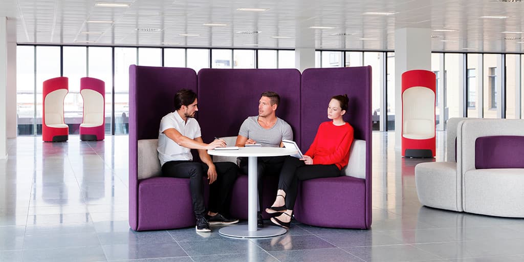 This high-back acoustic lounge seating design provides an informal meeting space with endless configuration possibilities. Available as a high-back with a low-back option, the contoured design enhances the acoustic properties and absorbs ambient background noise. Based around one simple unit, this high-back social distancing design can be used for all current office functions associated with soft upholstery such as touchdown and breakout areas, meeting spaces and partitioning. Its ease of use allows users to rearrange their office from day-to-day or even hour-to-hour depending on the task at hand.