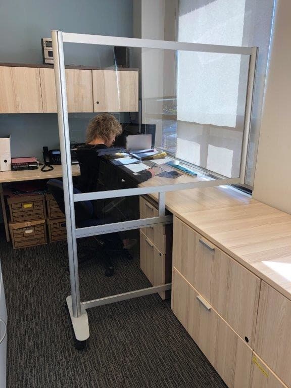 Easy Cleaning – We use cleanable non-porous materials such as laminates, clear and frosted acrylics, white marker board and bleach-cleanable panel fabrics with anodized aluminum frames.