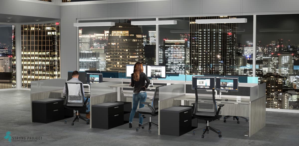 The optimistic view of the post-Covid workplace is that we have an opportunity for a creative, fresh start. Now is the time employers can be creative with their office design, improving worked well-being and transforming floorplans. This Modern Height Adjustable Cubicle system with its side and frontal acrylic up-mount screens will allow employers to create an office design that will support health and promote productivity.