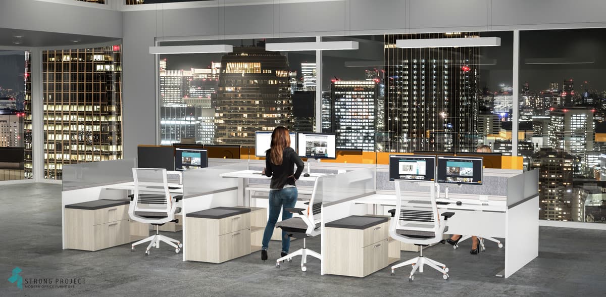 The optimistic view of the post-Covid workplace is that we have an opportunity for a creative, fresh start. Now is the time employers can be creative with their office design, improving worked well-being and transforming floorplans. This Modern Height Adjustable Cubicle system with its side and frontal acrylic up-mount screens will allow employers to create an office design that will support health and promote productivity.