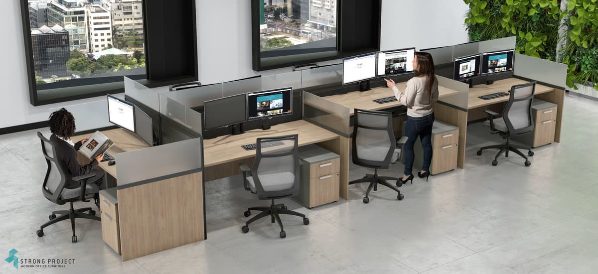 Add a touch of Modernism to your call center along with the health benefits of Sit-Stand Desks and Post-Covid Privacy Dividers with our Modern Call Center Cubicles! Ideal for integrating Team Leaders and Managers with their Call Center, Customer Service, Telemarketing or Sales Teams in open plan workstations.