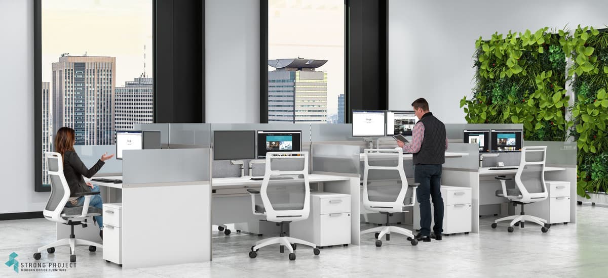 Add a touch of Modernism to your call center along with the health benefits of Sit-Stand Desks and Post-Covid Privacy Dividers with our Modern Call Center Cubicles! Ideal for integrating Team Leaders and Managers with their Call Center, Customer Service, Telemarketing or Sales Teams in open plan workstations.