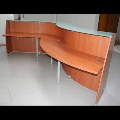 This curved reception desk collection features modular components with rounded lines and straight geometries which allows us to configure it in different ways to address your functional requirements and fit within your space.